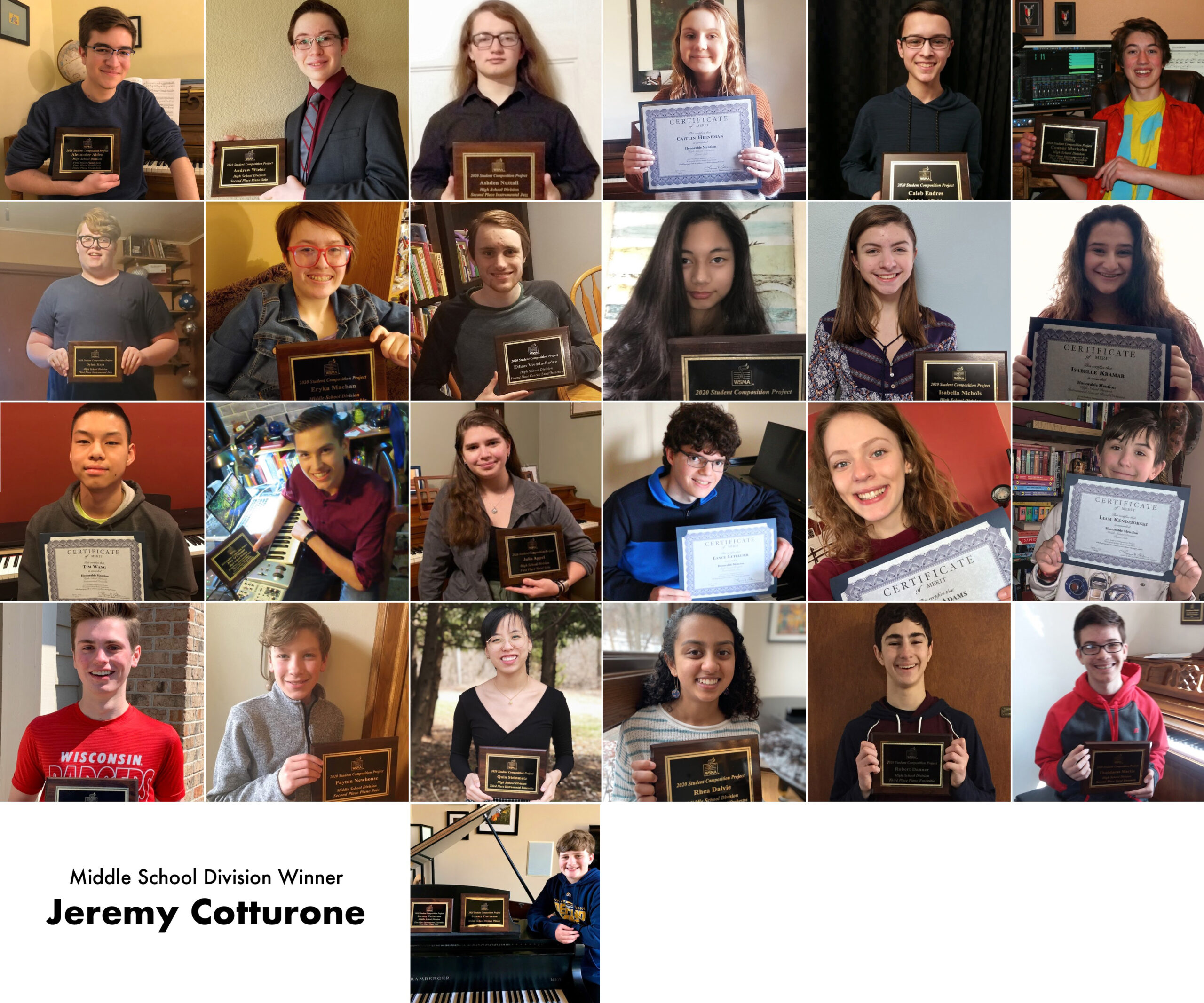 Honorable Mention: Piano Concerto in D Minor Movement 1 by Chase Van Benschoten from James Madison Memorial High School; Ben Jaeger – Educator